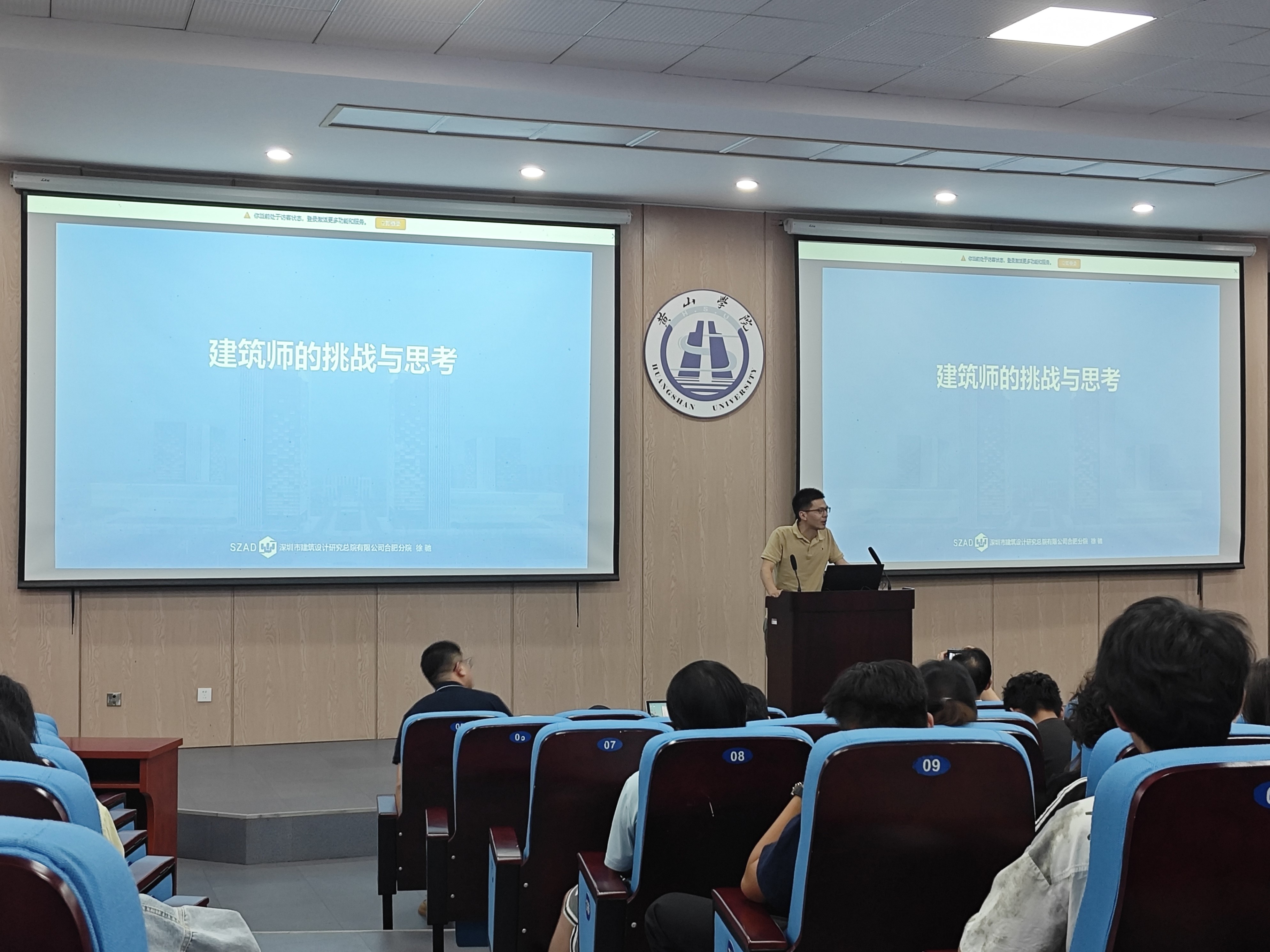 分享会上,两位校友结合大型公共建筑项目实践经历,从多元视角为同学们提供了有价值的建议。他们分别以从校园到工地:土木人的职业进阶之路、建筑师的挑战与思考为题,结合自身成长故事,告诉同学们沟通协调与抗压能力的重要性,提醒大家建筑行业既需要技术硬实力,也离不开团队协作的软实力。两位校友还鼓励同学们在校期间主动争取机会,积极参与实际项目,在实践中积累实战经验,将理论知识与工程实际紧密结合,要学会持续学习能力和提升创新思维。