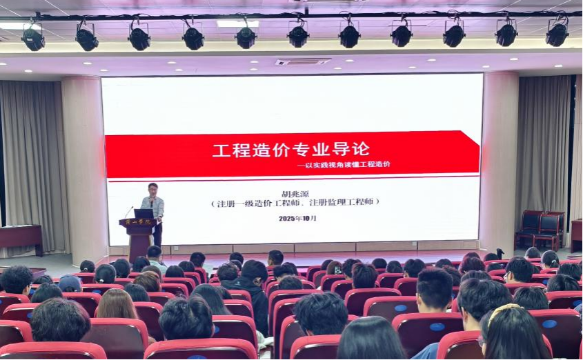 为帮助新生全面了解学科特色、明确学习方向、筑牢专业信念,10月21日yl23411永利集团2025级工程造价专业导论课在文端楼二楼报告厅举行。本次讲座特邀注册一级造价工程师、注册监理工程师胡兆源为工程造价专业新生做专业指导,由yl23411永利集团工程造价专业教研室主任黄剑主持。