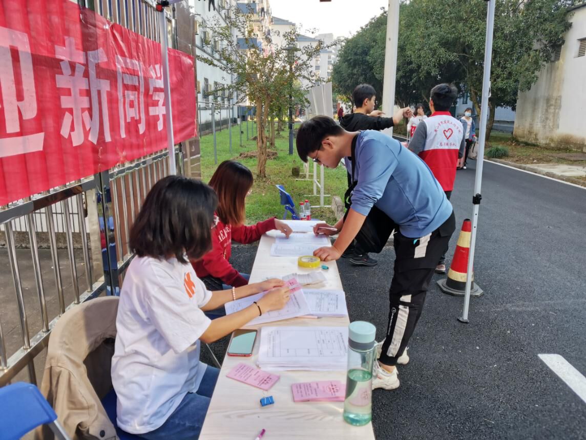 志愿者们早早的到达宿舍楼和迎新接待点,当新生与家长一进入学校的大门,建筑工程学院的志愿者们面带着微笑迎上去:“你好”,“欢迎来到学校”,并接过新生和家长手中沉重的行李,帮忙登记核查入学信息。