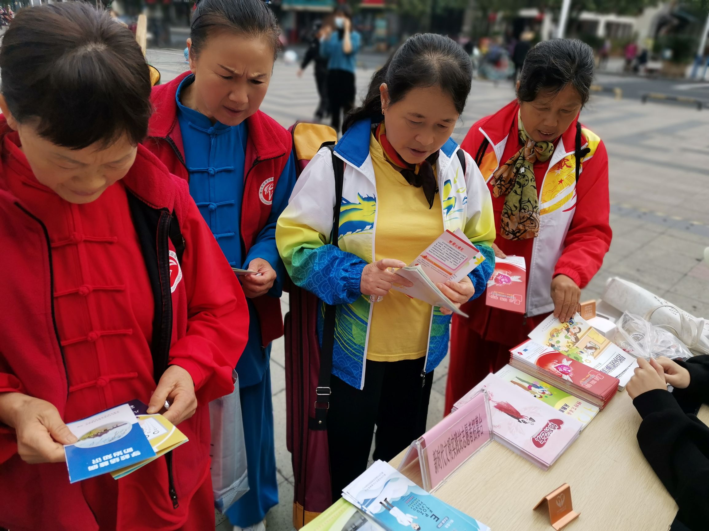 虽然天下着绵绵小雨,但志愿者们的热情依旧高涨。来到社区后,志愿者们按照计划各司其职,有的发放宣传手册,进入店铺挨个宣传;有的摆放桌椅,竖起宣传展板,向驻足的行人做介绍;有的则在社区的入口处,向来往小区的行人分发宣传手册并作讲解。活动中,志愿者们向社区居民宣传各种生活常识、防疫要求、安全知识等。当有行人驻足想了解更多的时候,志愿者们便会更加详细的介绍防范疫情、“三献”内容、红十字精神、志愿服务等相关知识。