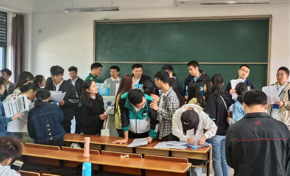 宣讲会现场气氛积极活跃,该公司集团旗下11家子公司的招聘专员与同学们进行近距离的交流沟通。