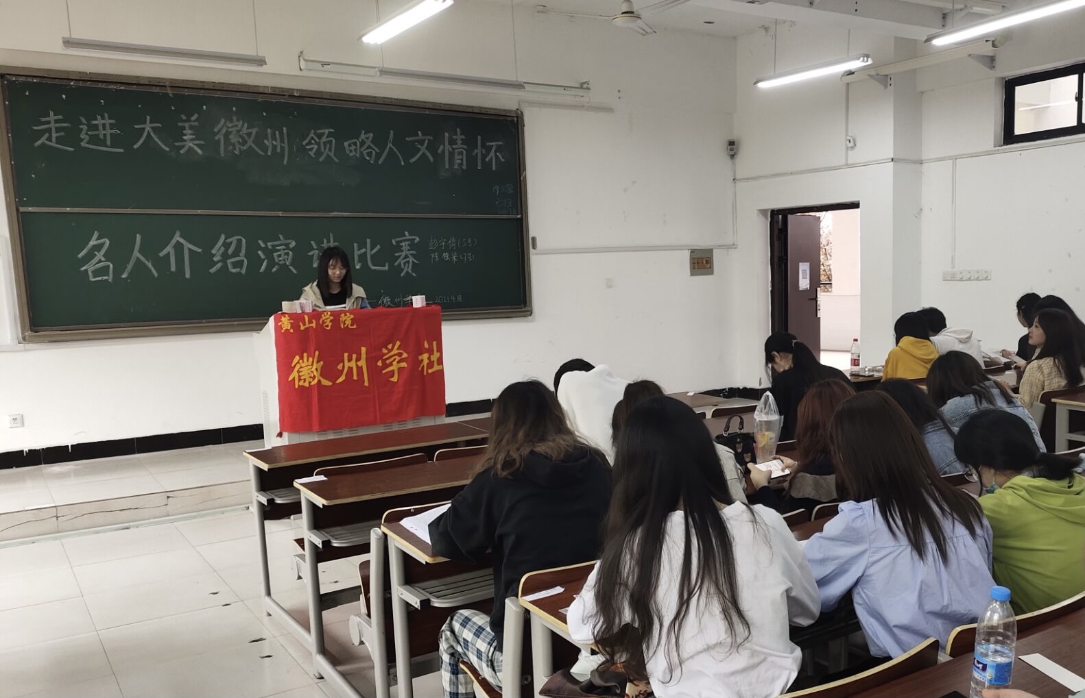 4月18日下午三点,徽州学社举办的“走进大美徽州,领略人文情怀——名人介绍”演讲比赛在文端楼2205教室拉开帷幕。