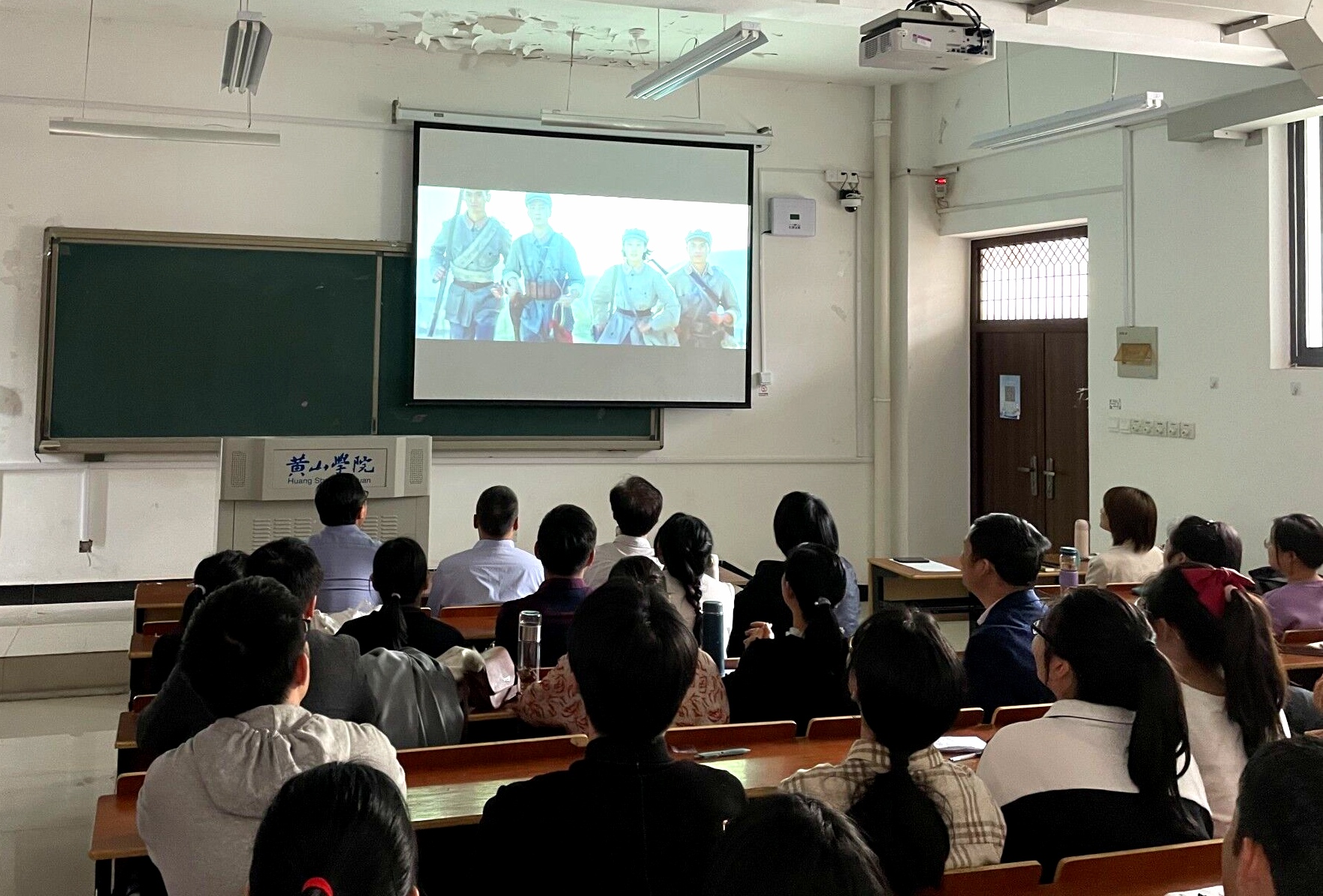 为深入推进党史学习教育,重温红色岁月,4月21日下午,yl23411永利集团党委组织全体师生党员在文渊楼1402教室,观看中共党史教育电影《大会师》。