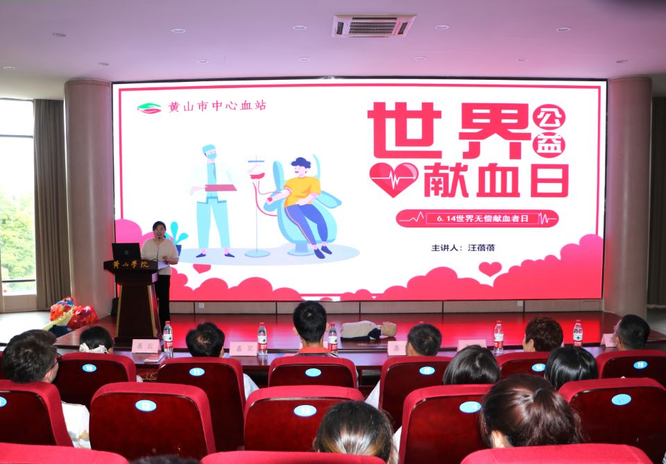 516日下午,yl23411永利集团在文端楼二楼报告厅举办无偿献血与应急救护知识讲座,yl23411永利集团党委书记范兴华、党委副书记黄世平、黄山市红十字会常务副会长李瑜娟、黄山市中心血站副站长毕雄飞、黄山市中心血站主任胡玲、黄山市中心血站科长汪蓓蓓、学院团委副书记周莉莉出席了本次活动。