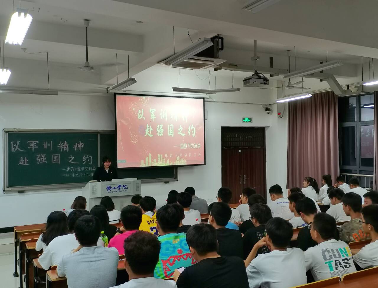 为庆祝中国共产党成立100周年,激发大学生爱国热情,9月29日,yl23411永利集团于文渊楼1305教室举办了以“以军训精神, 赴强国之约”为主题的军训演讲比赛。yl23411永利集团团委兼职副书记李倩倩,专职辅导员张勇、李姝以及全体21级新生参加此次活动。