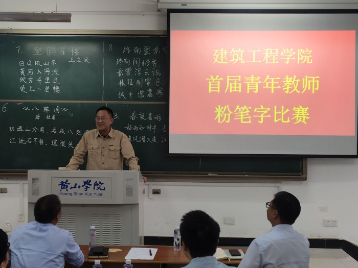 为弘扬中国书法之魅力,促进教师专业化发展,扎实教师教学基本功,展示良好的职业素养,1012日下午我院在1403教室举办了首届青年教师粉笔字大赛。本次比赛要求参赛选手在规定的时间里随机抽取一首古诗,力求做到书写规范,用笔精熟,笔画力量感强,版面布局合理美观。整个比赛竞争激烈,精彩纷呈。