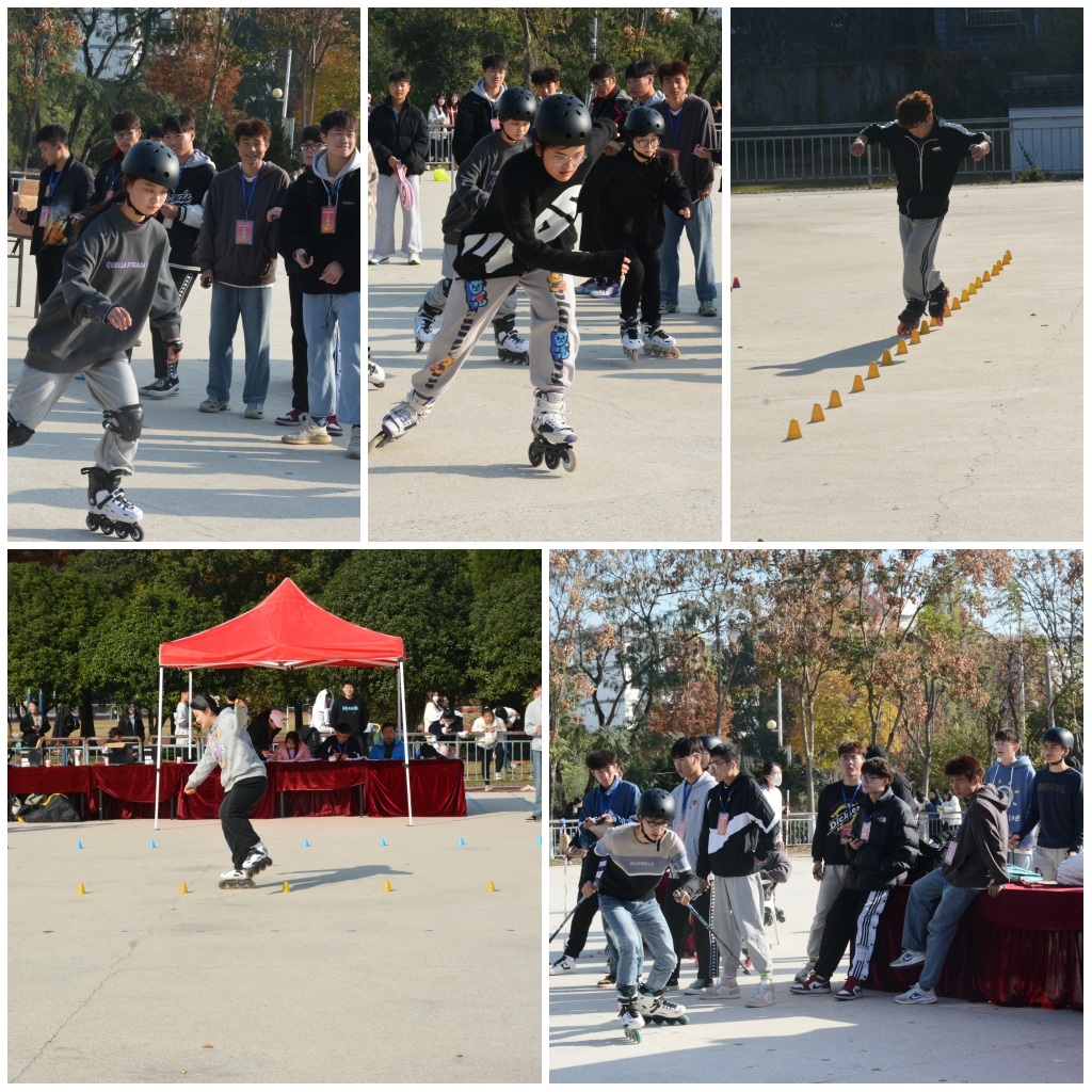 我院共计12名选手参赛,比赛项目包括花式绕桩、花式刹停、滑板街式、轮滑回转、1000米团体混合计时赛等。在比赛过程中,运动员们以矫健的身法,娴熟的技术,灵巧的动作展现轮滑技巧。在场的观众热情高涨,伴随着欢呼喝彩声,选手们愈战愈勇。
