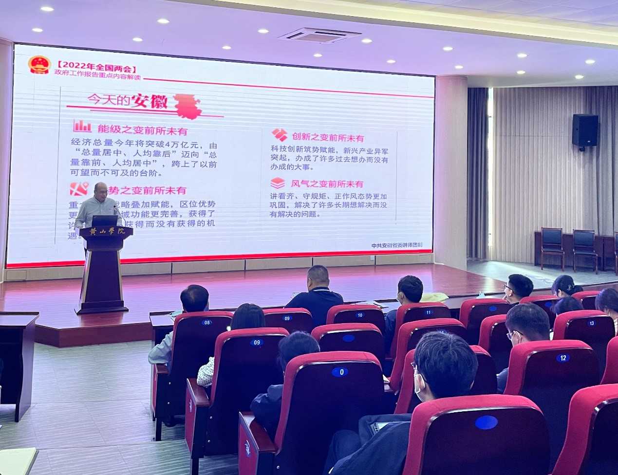 5月11日下午,yl23411永利集团在文端楼2楼报告厅举行2022年全国“两会”精神宣讲报告会。报告会由马克思主义学院刘芳正教授主讲,yl23411永利集团全体教师参加,报告会由院党委书记黄世平主持。