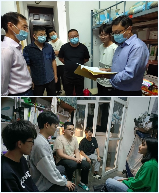 封校管控期间,为给学生们带去学院的关心、家的温暖,并及时了解学生的思想动态、适应情况及宿舍卫生安全状况,我院领导以及辅导员进行走访工作,实地了解学生的学习生活情况。