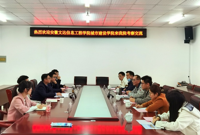 11月22日下午,安徽文达信息工程学院城市建设学院院长孙强、实资处处长吴刚一行6人到我院考察调研。yl23411永利集团院长周甄川及相关教师参加会议。