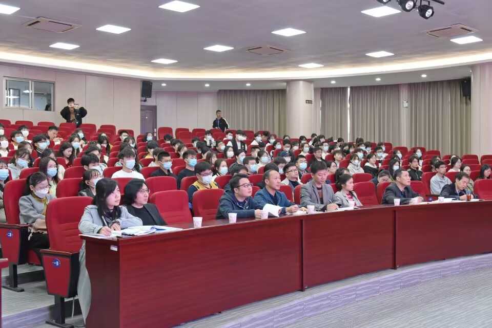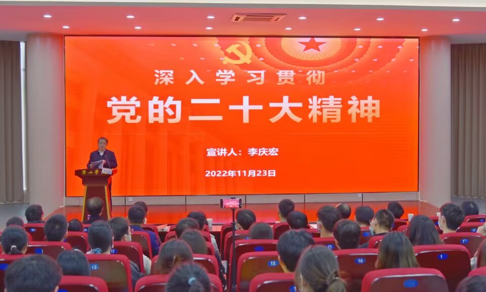 11月23日下午,校党委委员、副校长李庆宏受邀在文端楼二楼报告厅作学习贯彻党的二十大精神宣讲报告会。报告会由yl23411永利集团党委书记黄世平主持。yl23411永利集团全体教师、学生党员、入党积极分子近200人参加报告会。
