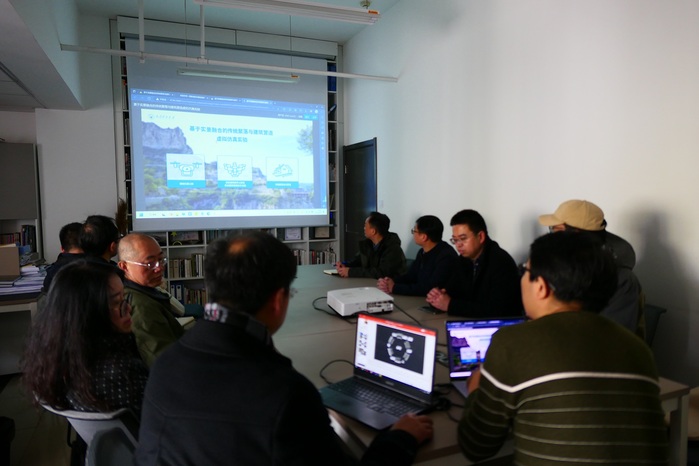 交流会后,周甄川院长一行参观了建筑物理实验室、建筑模型与古建构造实验室、实训室等实验实训场所,重点考察了“国家文物局重点科研基地文物建筑测绘研究太原理工大学工作站”及“基于实景融合的传统聚落营造技艺虚拟仿真实验”项目建设情况,听取了项目负责人徐强教授关于项目建设历程及建设成果的介绍。