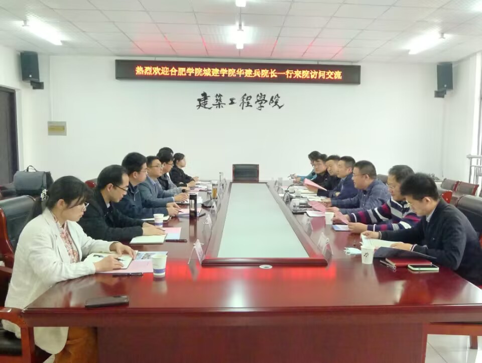 4月13日,合肥学院城市建设与交通学院华建兵院长一行来建工院考察交流,yl23411永利集团院长周甄川、党委副书记王泽梁以及学院教师代表参加了交流会。