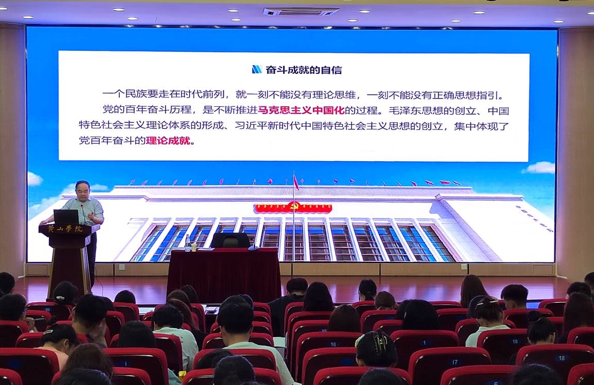 张小明以“坚定历史自信,增强历史主动”为题,从党的历史自信从何而来、如何理解百年历程中党的历史主动精神、怎样理解中华民族伟大复兴进入不可逆转的历史进程三个方面进行阐述,讲述党的伟大成就和光辉历程。