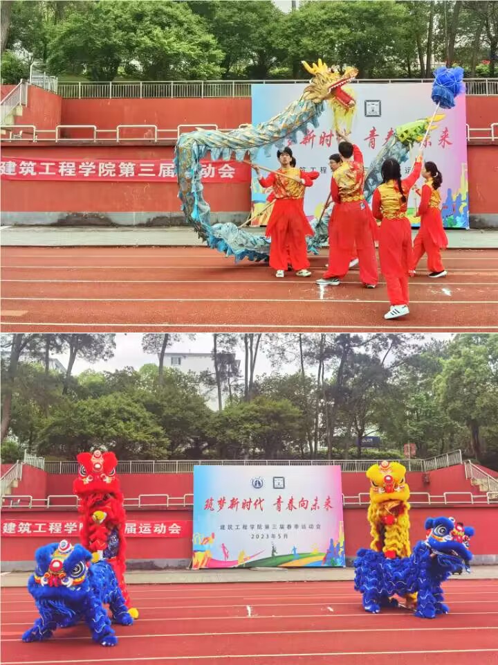 随后,裁判员代表20城规汪文韬和运动员代表21建筑周嫣然上台发言并宣誓。在舞龙和舞狮表演后运动场上的氛围达到了高潮。