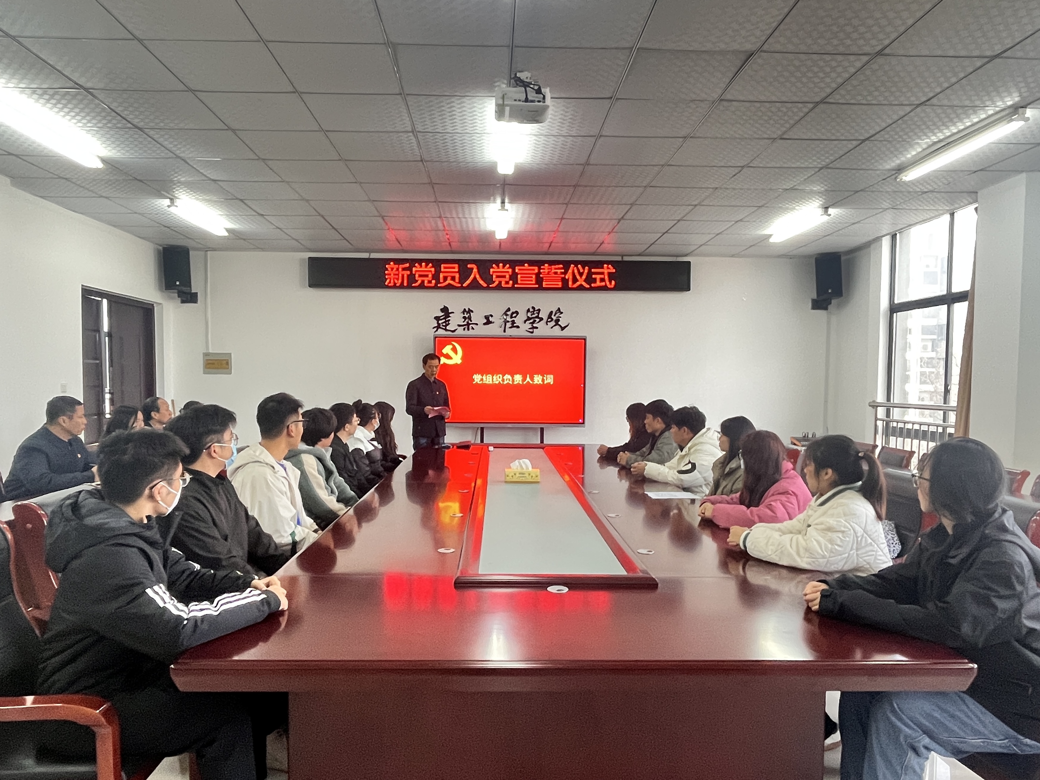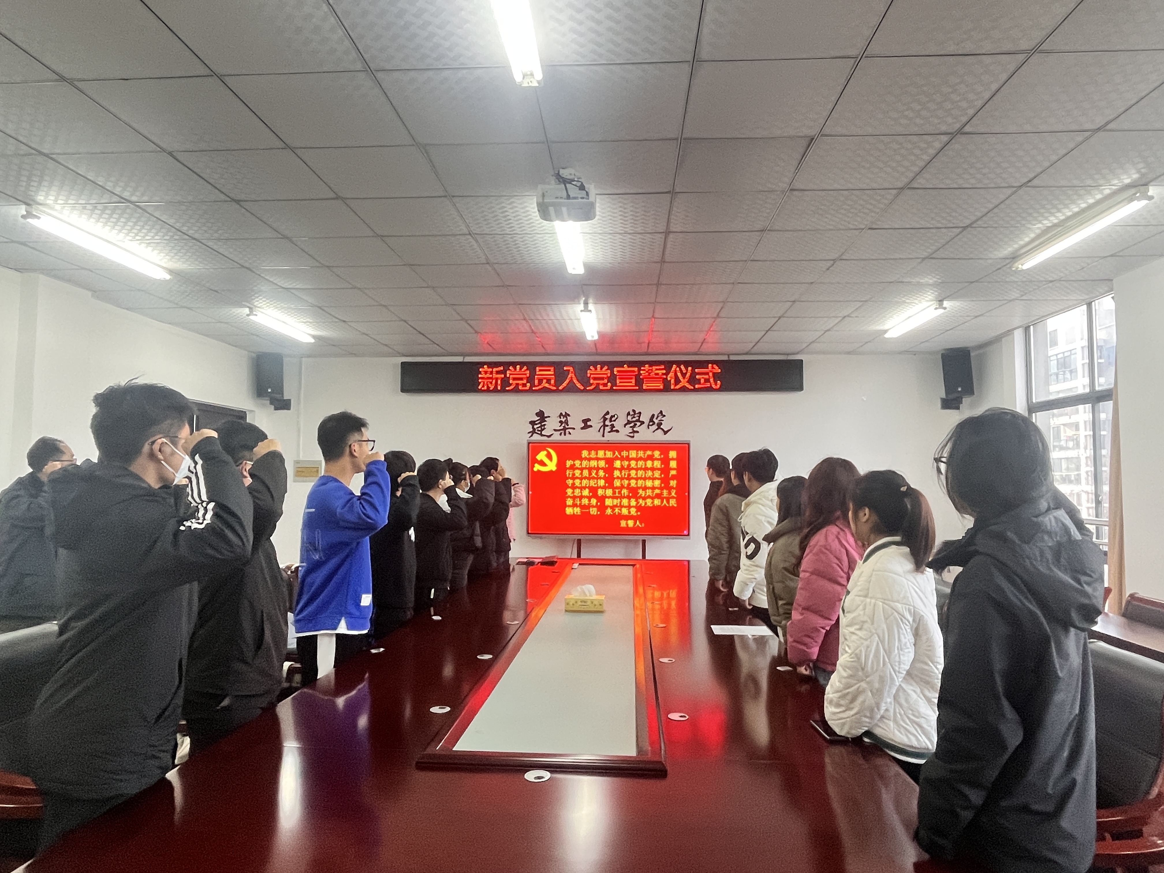 为深入推进学习贯彻习近平新时代中国特色社会主义思想主题教育走深走实,教育引导新接收的预备党员铭记入党初心、坚定理想信念、强化党员意识,2023年12月14日下午3点,yl23411永利集团新党员入党宣誓仪式在文启楼会议室举行,学院党委书记黄世平、党委副书记周甄川,各党支部书记以及全体学生新党员参加。