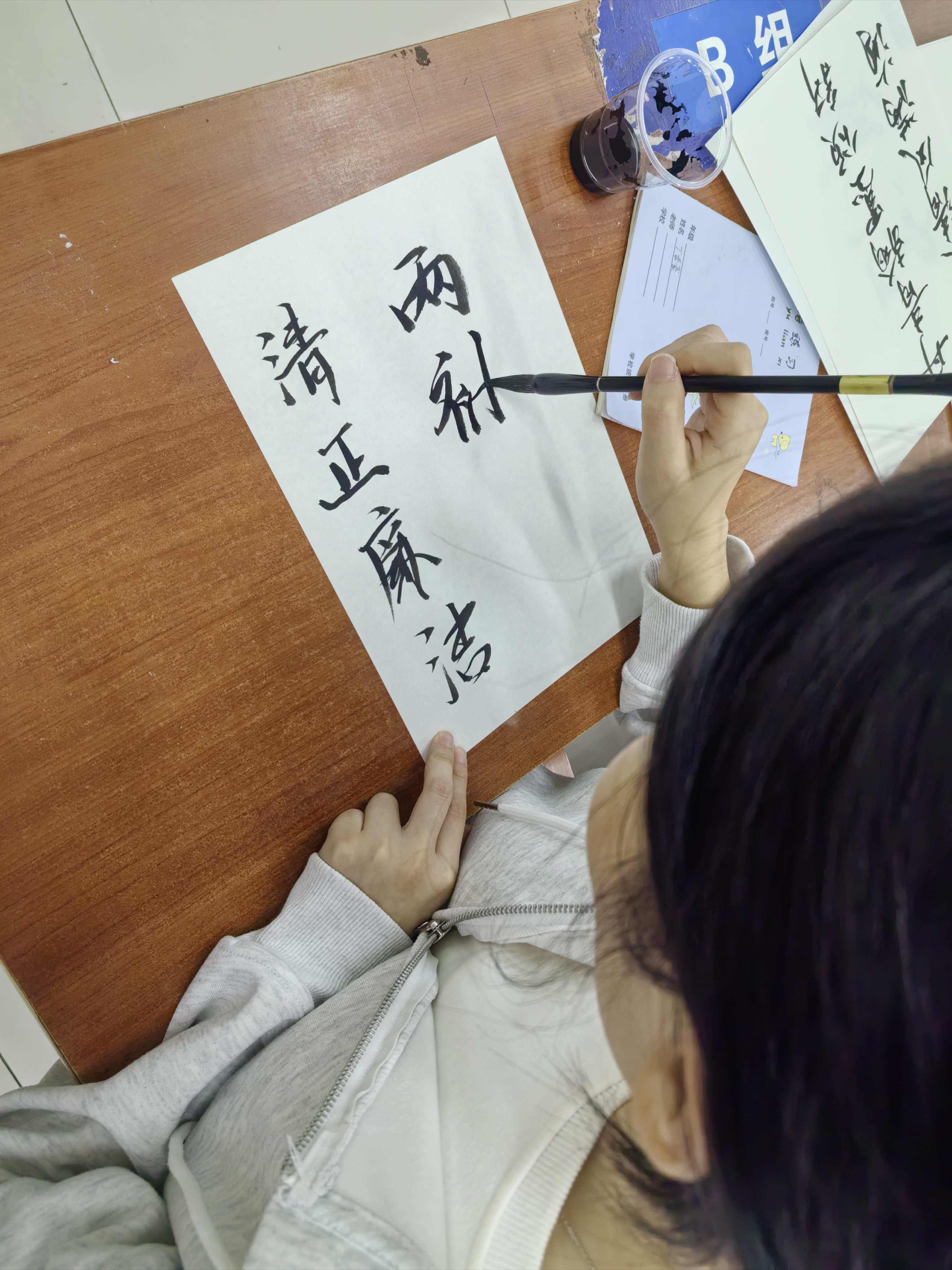 此次活动不仅激发了同学们对软笔与硬笔书法的学习兴趣,也为学生提供了一个展示自我、交流学习的平台,丰富了大家的课余文化生活,让大家在笔墨实践中感悟廉洁精神,在校园内营造了崇廉尚洁、风清气正的良好氛围。