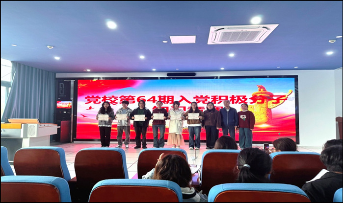 赛事特设互动环节,入党积极分子踊跃参与,同时,班主任还对题目答案进行了详细解读,在轻松氛围中学员们深化了对党的理论认知,实现“以赛导学、全员受益”的育人实效。经过激烈角逐,最终评选出团体一、二、三等奖及优秀奖,校党委组织部同志为获奖队伍进行了颁奖。