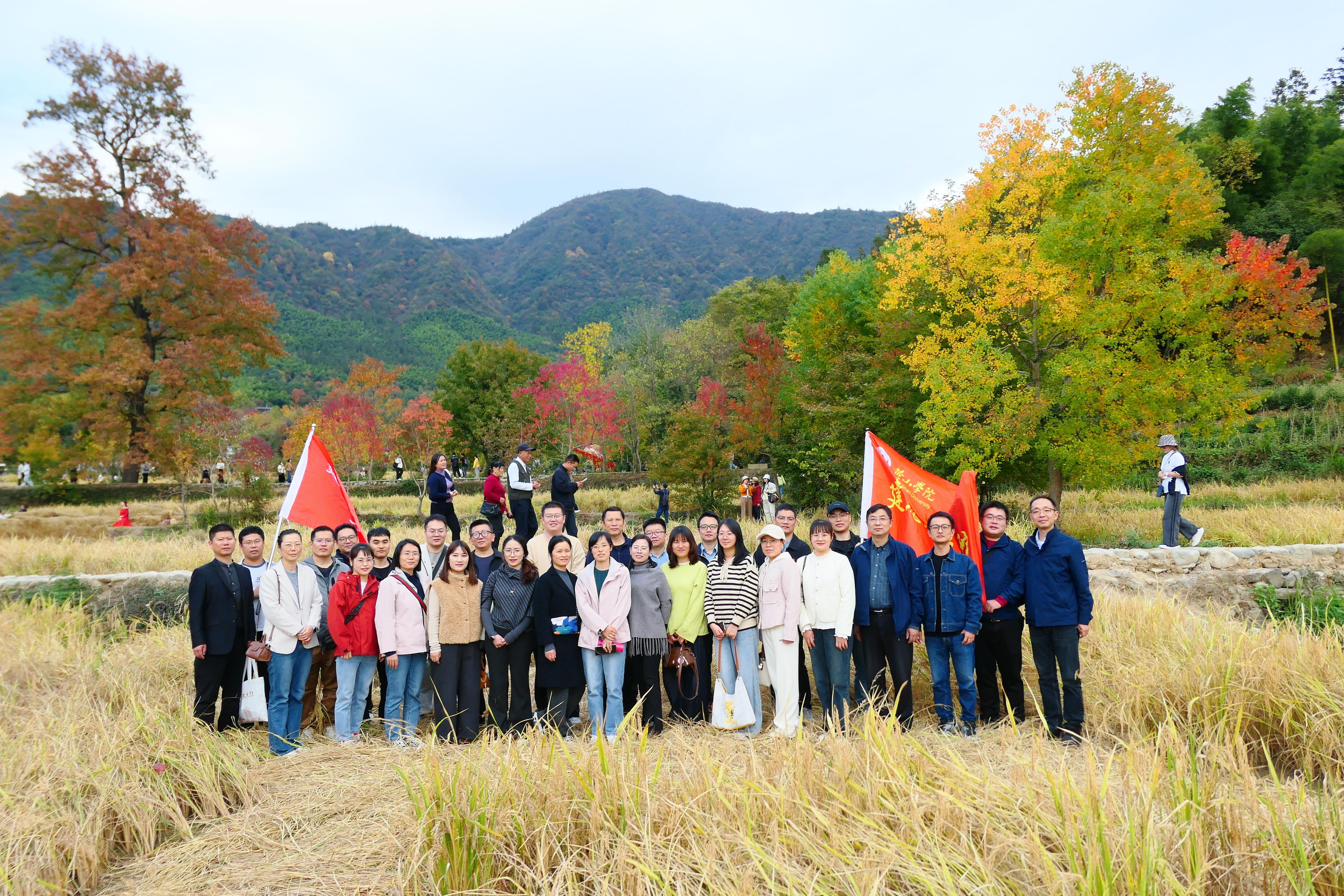 时值初冬,素有“中国画里乡村”美誉的塔川正是一年中最富诗意的时节。层林尽染,色彩斑斓,如火的红枫、灿金的乌桕与古朴雅致的徽派民居、静谧的田园相映成趣,构成了一幅动人的天然画卷。活动中,教职工们暂别繁忙的工作,尽情领略独特的徽州秋韵与冬初景致,兴致勃勃地漫步于蜿蜒的古道村巷,利用专业的知识去讲解、理解、认识、交流徽派建筑和徽州古村落;沉醉在清新自然的山水之间大家或驻足欣赏,用镜头捕捉每一帧美景;或三五成群,畅谈交流,欢声笑语回荡在山谷田间整个行程轻松愉快,其乐融融大家纷纷用相机记录下这如诗如画的美景与彼此欢快的笑脸。