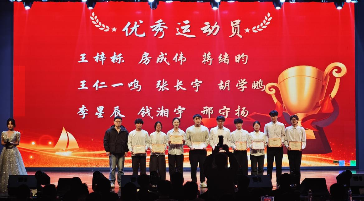 表彰环节是大会核心亮点。学院院长邓林宣读表彰决定后进行颁奖环节。王梓栎等9人获“优秀运动员”称号,姚世琪等5人获评“明日之星”,祖睿铖等4人获“运动会突出贡献奖”,董家俊等10人当选“优秀志愿者”,杨春雨等4人获评“优秀干部”,丁森等8人荣获“学科竞赛之星”。团体奖项方面,2025级建筑学3班等3个班级获评“运动会先进班级”,男子4×400接力队等3支队伍获“运动会优秀团队”称号,2023级工程造价班等4个班级分获“书香团支部”“文明班级”“优良学风班级”荣誉称号