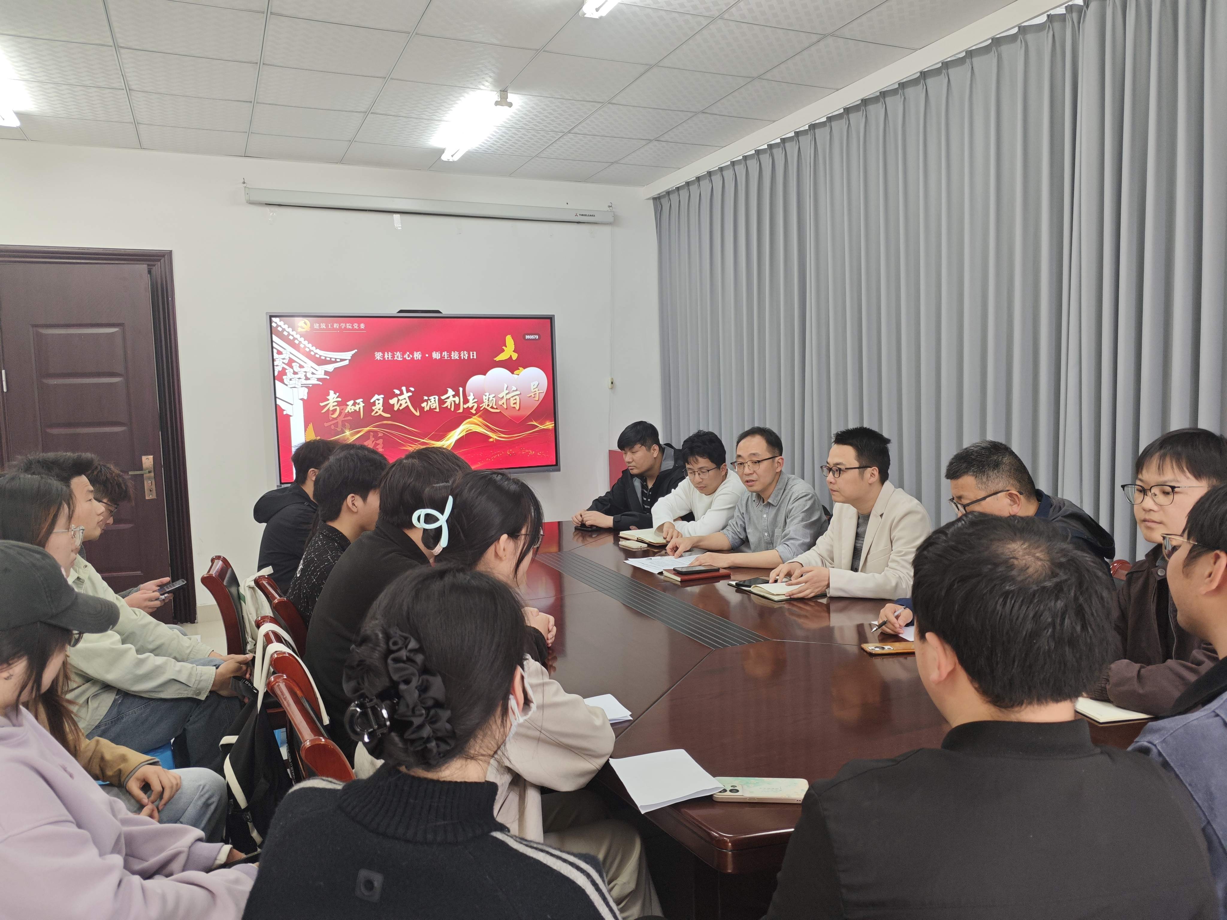 在互动答疑环节,参会学生结合自身实际情况,逐一汇报了报考院校、初试成绩、调剂意向及心仪地区等信息。老师们耐心倾听每一位学生的诉求,结合个人分数、专业背景、历年调剂录取数据及最新政策动态,逐一进行针对性指导,为同学们明确了调剂方向。