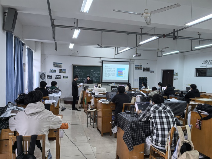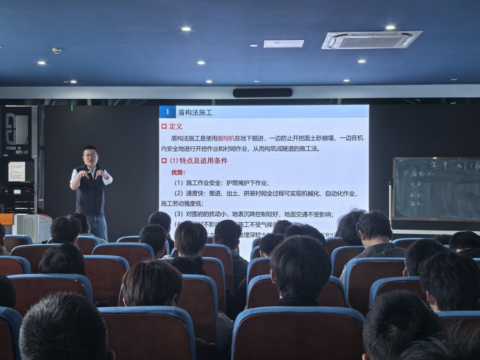 课堂上,罗磊、甄恩泽两位教师分别以“高校图书馆第三次草图评析”、“盾构法施工”为主题进行教学展示。罗磊老师通过引入国家图书馆相关案例,引导学生思考何为好的图书馆设计方案,评图过程中采用了3+2+1模拟评审方案,活跃了课堂气氛,创新了教学方法;甄恩泽老师通过引入国内超大直径盾构工程案例,梳理了盾构法原理、关键工艺及技术重难点,引发学生思考大国工匠精神与自主创新意识。