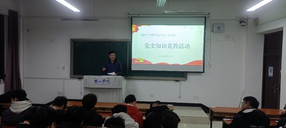 党的百年征程波澜壮阔,我们当代大学生应该学习党史,从党史中汲取信仰的力量。12月19日晚,20土木一班在率水校区文渊楼1304教室举办百年党史答题活动,本次活动通过抢答方式进行。
