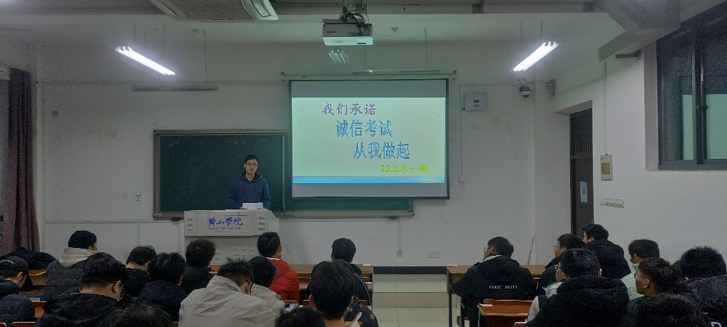 12月17日晚,在率水校区文渊楼1304教室,20土木一班开展以“诚信考试,从我做起”主题班会。辅导员王鹏飞老师到场参加并主持此次班会。