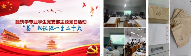 21建筑班利用易班平台开展建筑学专业学生党支部主题党日线上活动“‘易’起认识一至二十大”,把党建工作和易班相结合,充分发挥了易班平台优势;线下建筑班开展了“我笔写我心——心灵信箱”心理安全教育活动,让同学们敞开心扉,把自己内心想说的事情写下来,让班级同学为你出谋划策,活动形式新颖,特色鲜明。