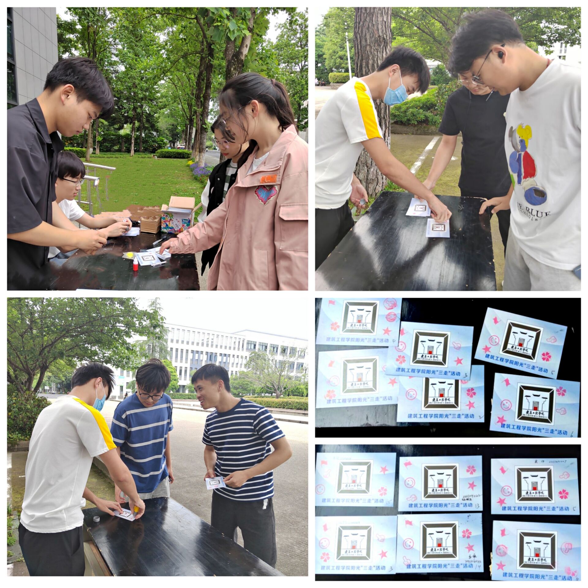 活动于下午两点正式开始,路程中设置了多个打卡点,如体育馆、图书馆、大学生活动中心等。参与活动的同学需先从建工院院楼门口领取卡片后出发,然后在规定时间内前往指定的地点进行打卡,最终再回到建工院院楼,全程大约5公里,共有100余名同学参与。