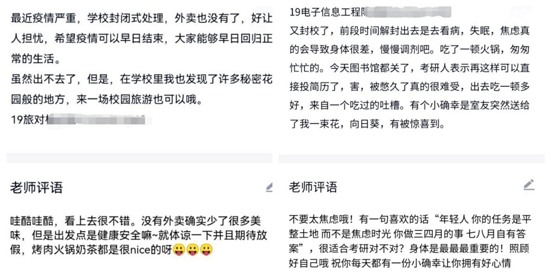 当谈起这次系列活动的感受时,朱兴森同学说:“我认为这次的系列活动是非常有意义的,首先让我找到了一个良好的疏解心情的途径,其次也在一定程度上为营造了良好的校园氛围。参加了这些活动,我收获了许多,以后会更加珍爱生命,善待他人,享受当下。”