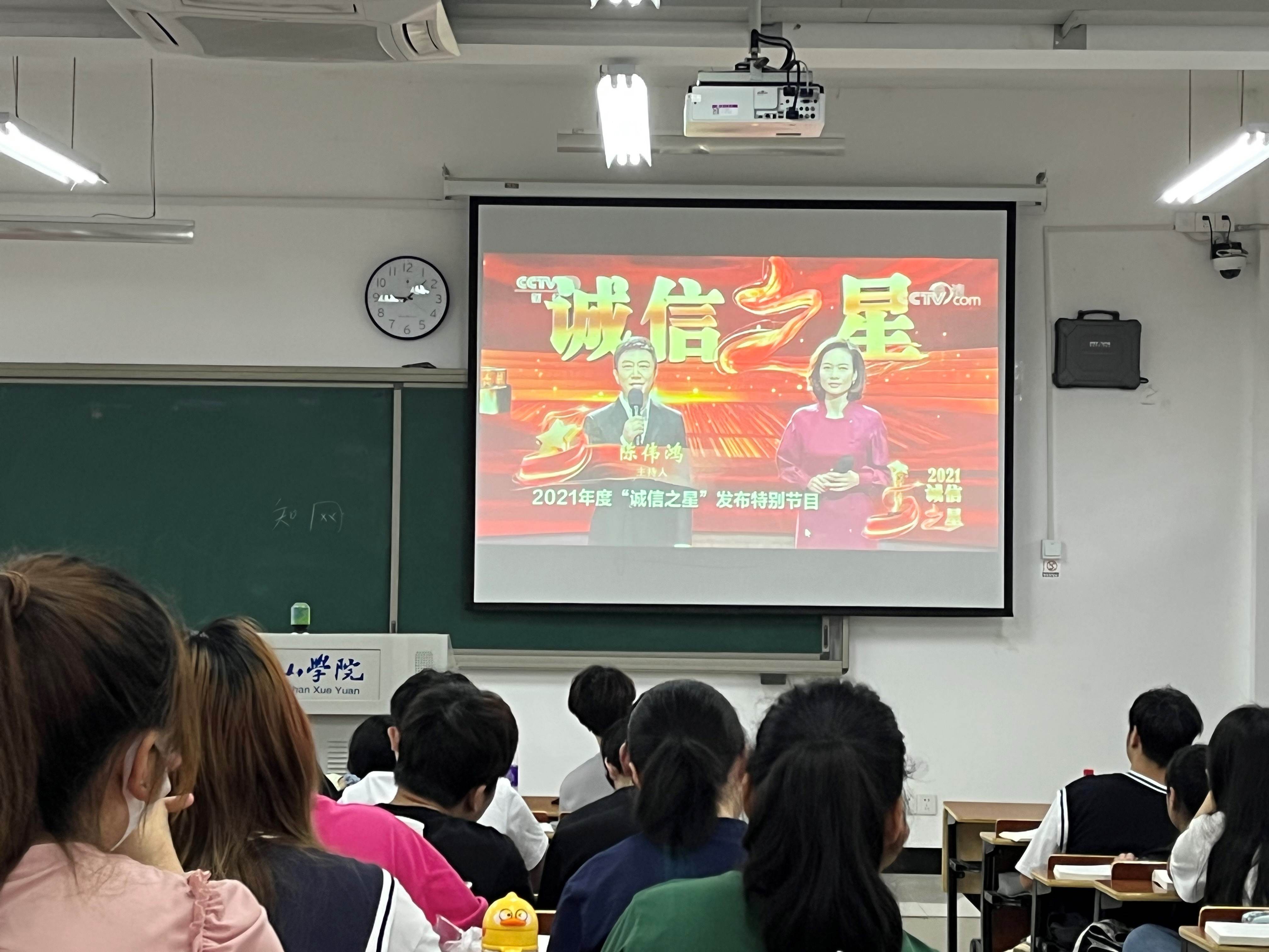 我院20级学生共同观看了2021年“诚信之星”特别节目,不仅弘扬社会主义核心价值观,传递正能量,以诚立身,更鼓励大家积极投身“诚信校园”建设之中,增强诚信教育活动的感染力。