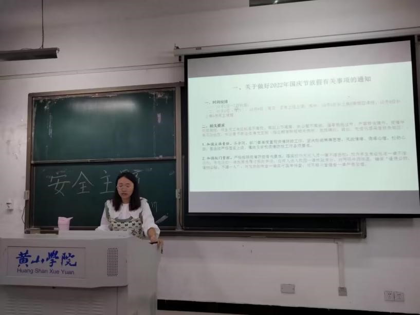 班会上,辅导员先向同学们介绍了假期需要注意的安全问题,重点强调了疫情的防控问题,提出放假期间,师生员工未经批准不离校、原则上不离黄、非必要不离皖,倡导就地过节。严禁前往境外、疫情中高风险地区,非必要不前往疫情发生地,还提醒同学们需要保护好自己的人身安全和财产安全。