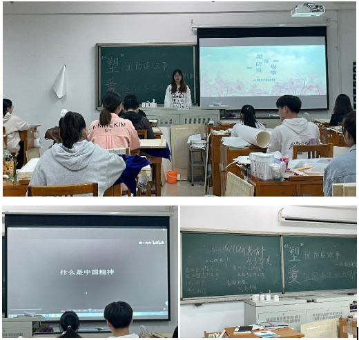 活动期间,同学们充分发挥特长,将自己的想象力、创造力、观察力和记忆力融入到粘土创作中。小组成员奇思妙想,为小组作品创作出谋划策。整个活动在欢声笑语中有序进行,氛围轻松活跃。最后,大家的思维和灵感在碰撞中诞生了许多的“旷世杰作”。完成作品后,同学们依次上台讲解自己手工作品含义,兴高采烈地述说着自己创作的感悟与心得。最后,同学在黑板上留下寄语,表达内心爱国情感并合影留念。