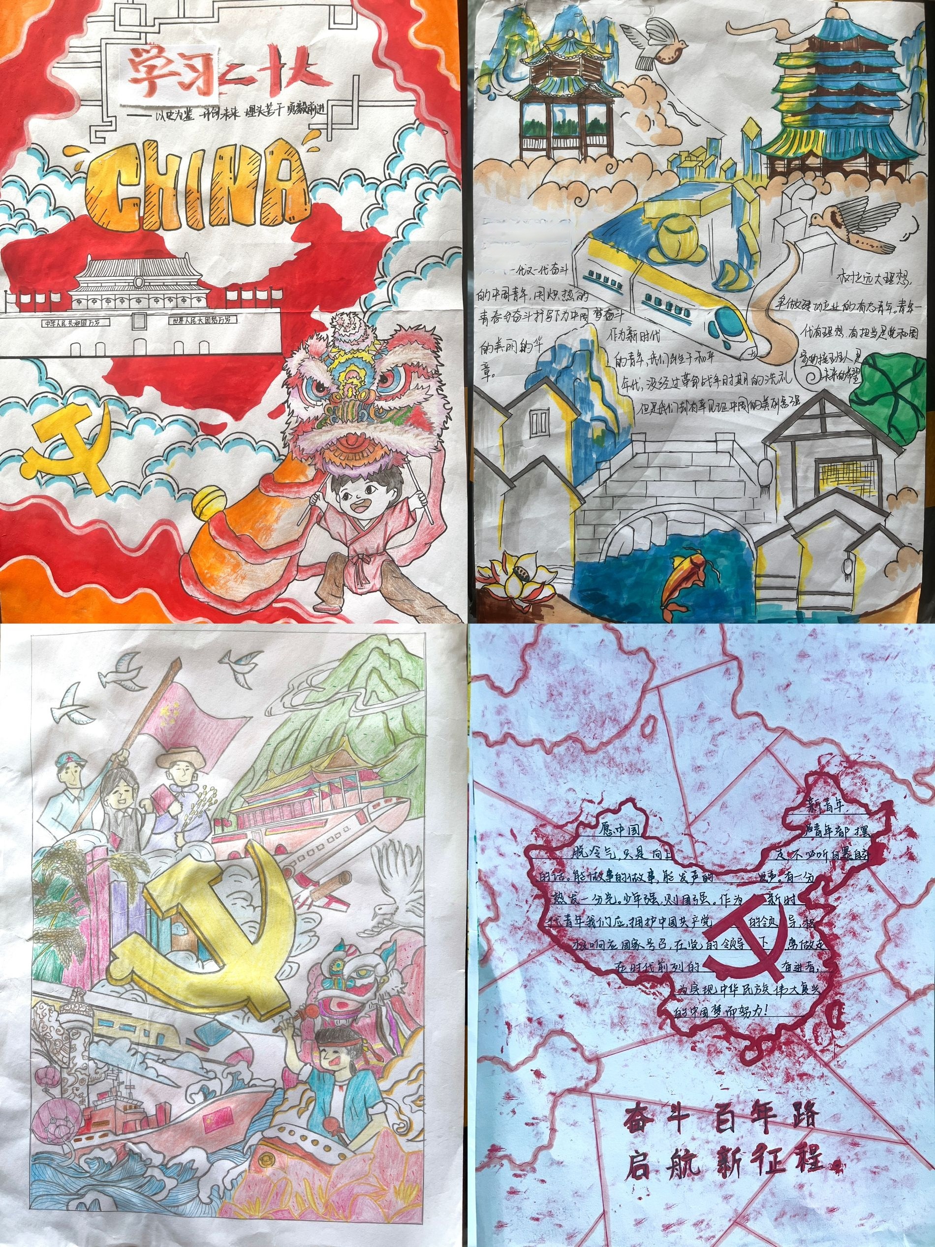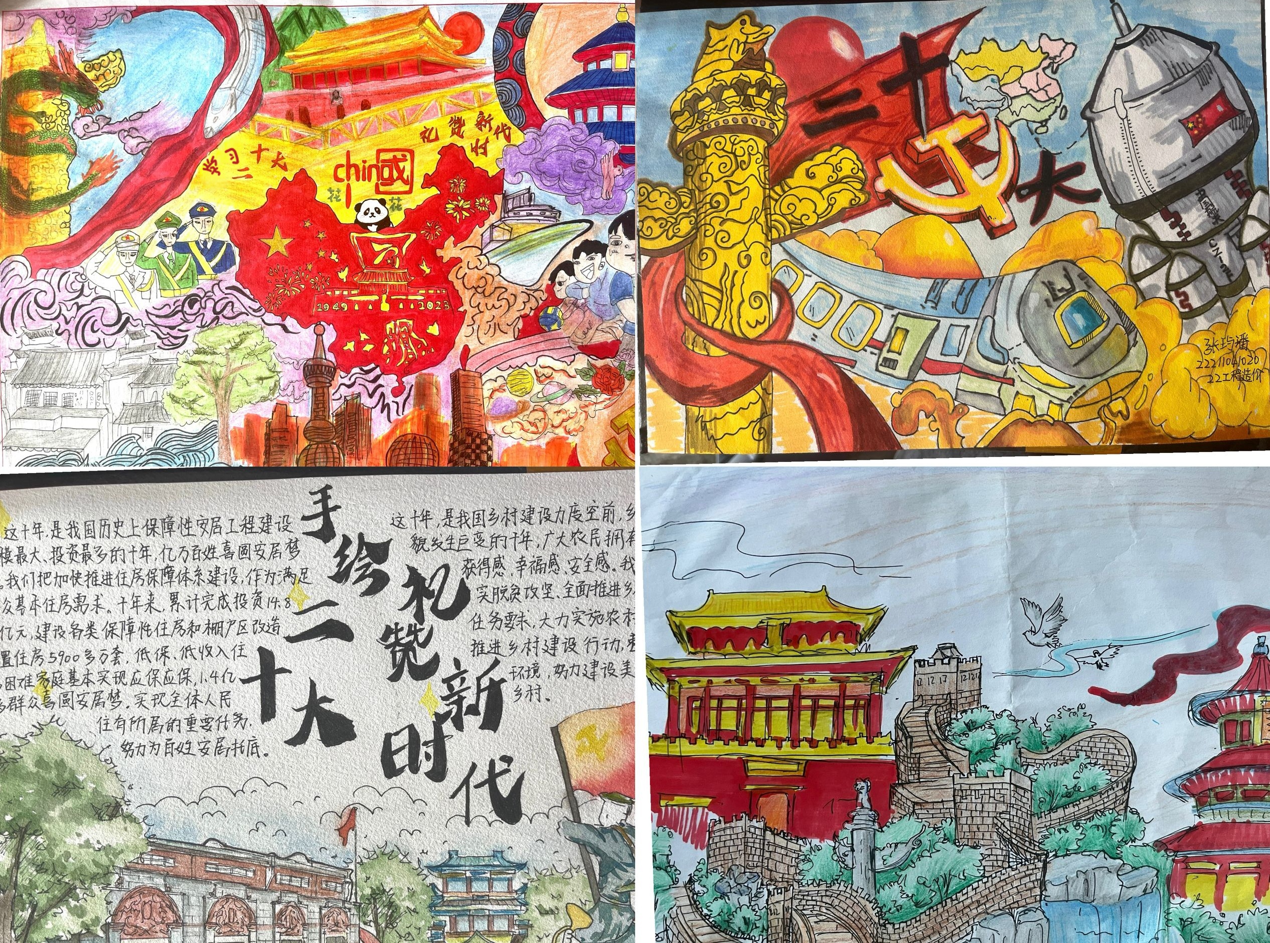 通过绘画作品表达了学院学生对祖国的深厚感情和对国家繁荣昌盛的美好祝愿。作品以绚丽的色彩和生动的图案形象,展现了对祖国的无限热爱。