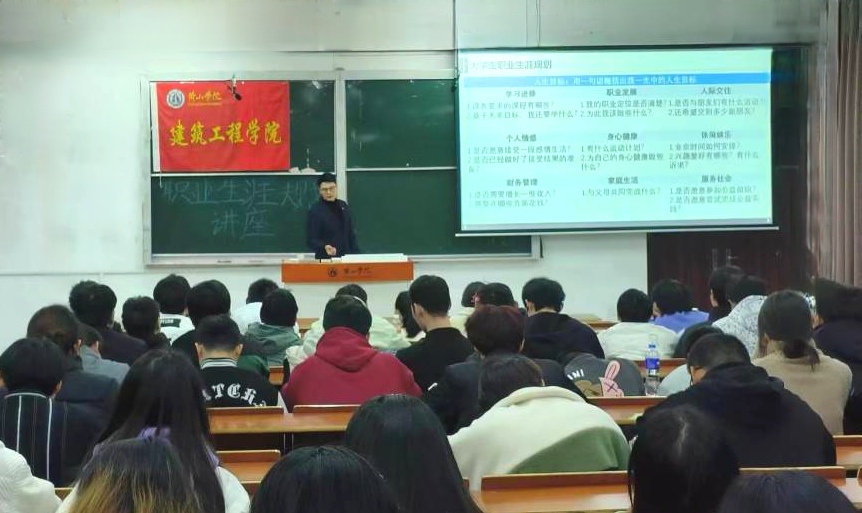 为进一步落实大学生就业引航计划,引导学生立足实际、找准定位,做好职业生涯规划,掌握职业生涯规划的基本知识,树立正确的人生目标和职业观念,积极对待现阶段的学习,yl23411永利集团于11月28日晚7点,在文渊楼1303教室开展了职业生涯规划讲座。本次讲座邀请到14级建筑毕业生方承锐担任主讲人。