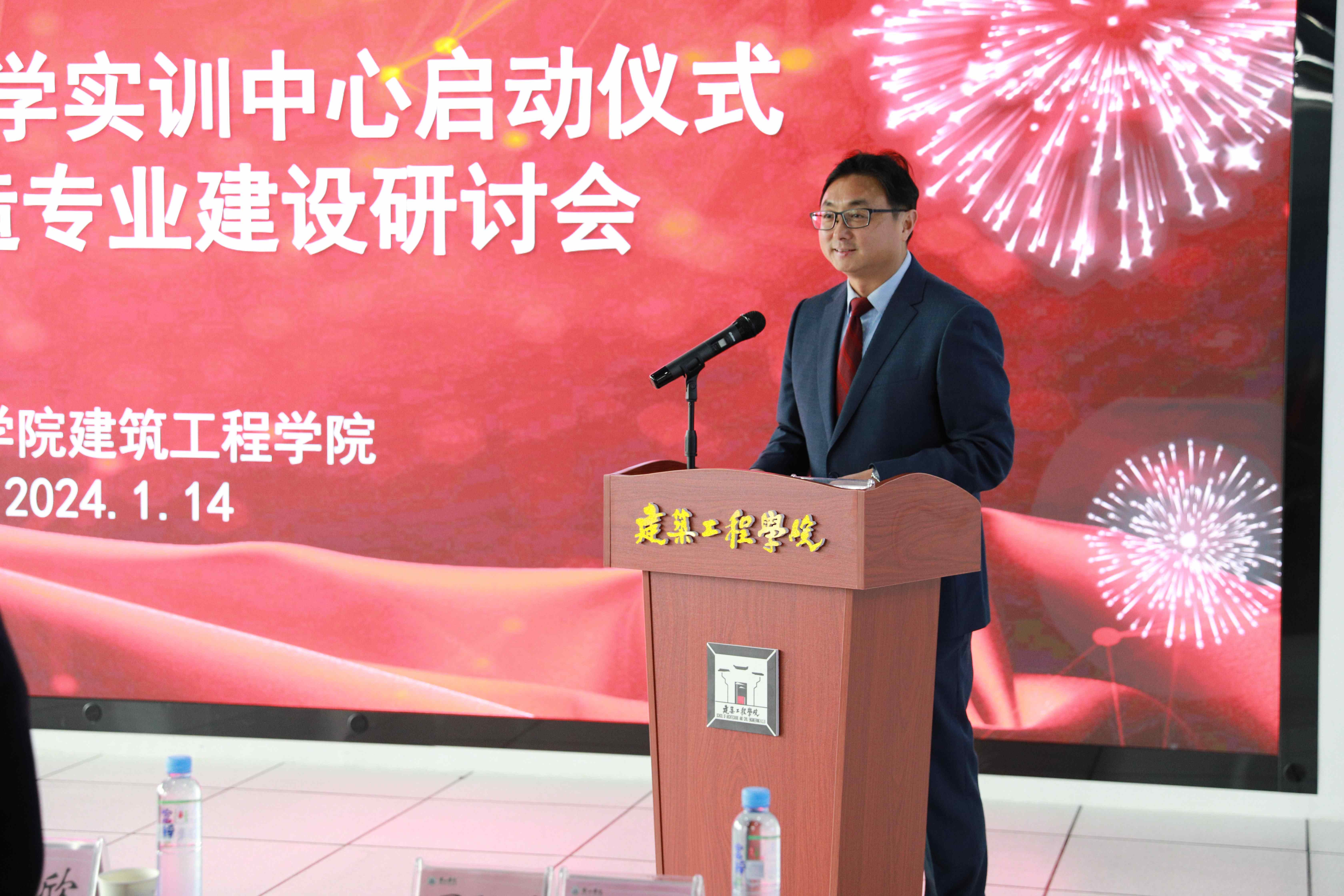 张小明在致辞中对到访的嘉宾专家表示感谢和欢迎,他介绍了我校的办学定位、办学特色、办学成果及发展战略。他指出,智能建造作为一门新兴的交叉学科,涉及各相关技术间的高度融合,正引领新一轮的建造业革命。学校将依托新建成的智能建造教学实训中心,积极促进yl23411永利集团智能建造新专业申报,与兄弟高校与行业企业共同推进全省智能建造教育领域新发展。