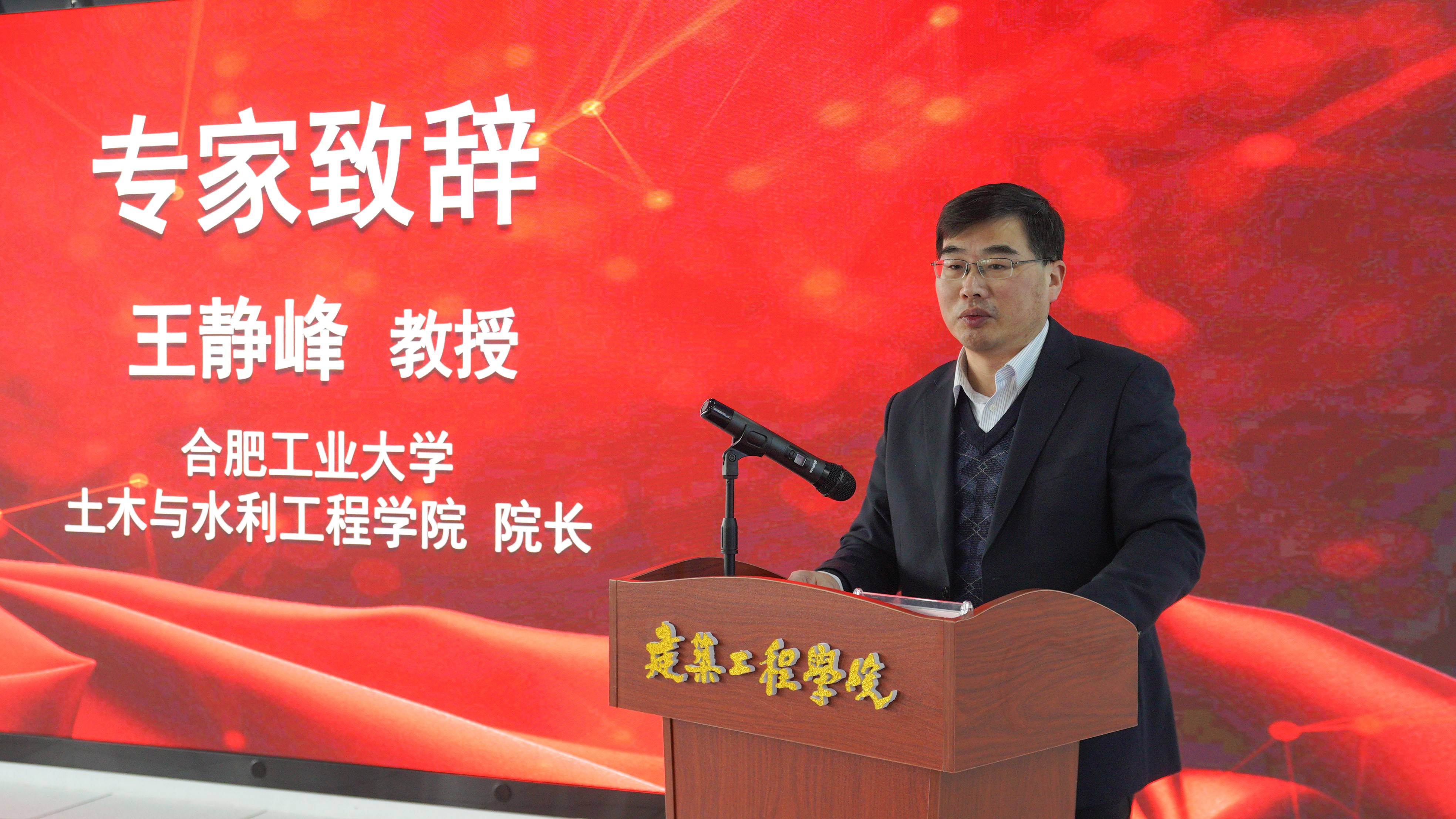 王静峰代表专家致辞,对智能建造教学实训中心建设给予高度肯定,介绍了安徽省高校智能建造专业建设情况,并指出,建筑相关专业转型升级,要聚焦本科教育高质量发展,主动适应经济社会发展需求变化,有效整合现有教学资源,夯实专业建设内涵,推动人才培养质量不断提升。他表示,将积极支持yl23411永利集团申报智能建造新专业。