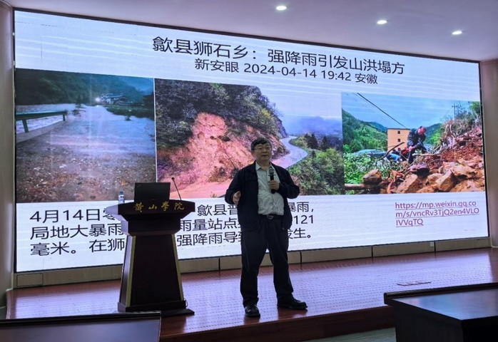 报告会上就黄山地区滑坡治理的技术方法等问题,岳中琦教授与参会同行进行了深入的交流与讨论。会议最后,岳教授对各位同学表达了衷心的祝福和殷切的期望,鼓励年轻人抓住时机,积极投身到祖国的工程事业中,为黄山乃至中国的岩土、地质科学和工程建设做出自己的贡献。