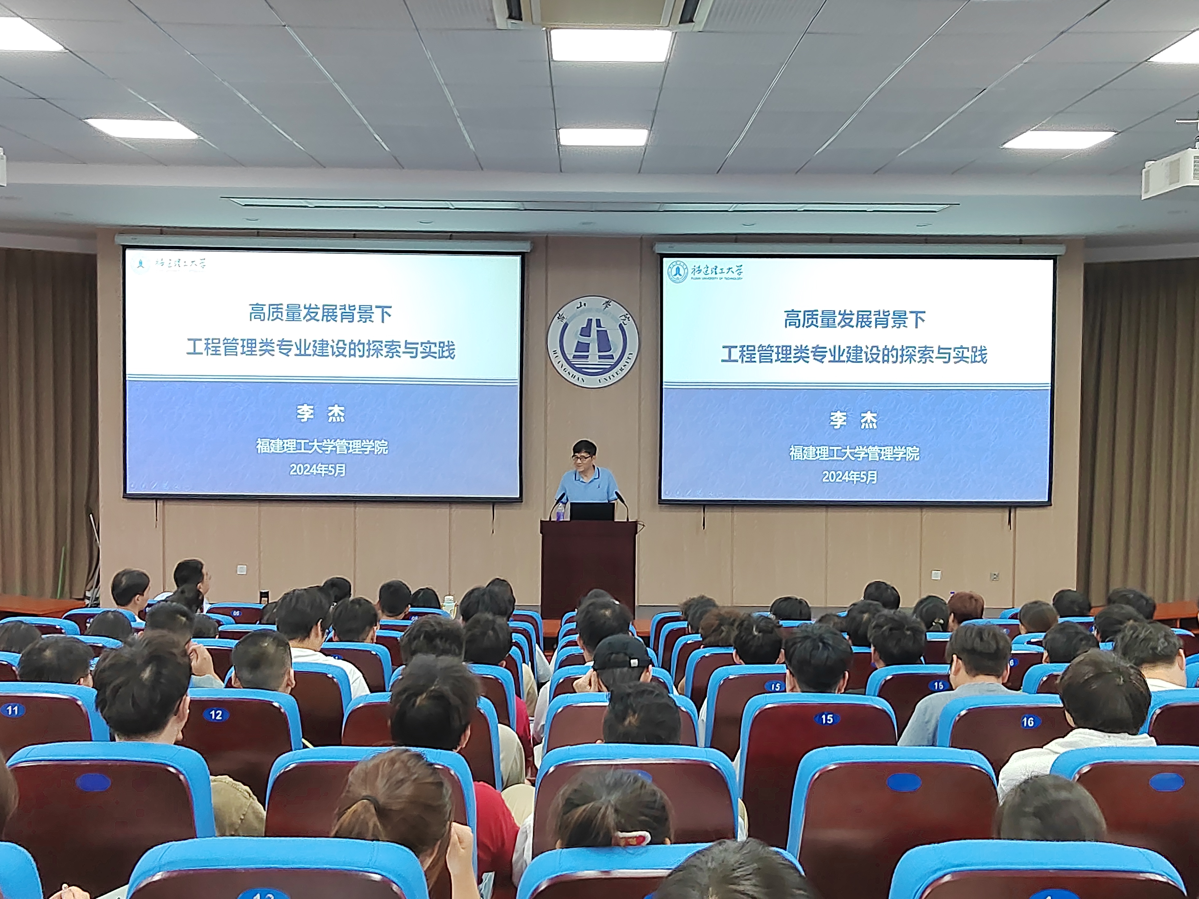 58日,在率水校区文端楼一楼报告厅,一场关于工程管理类专业建设的学术报告圆满结束。本次报告由福建理工大学李杰教授主讲,主题为《高质量发展背景下工程管理类专业建设的探索与实践》。yl23411永利集团师生共180余人参加报告会,报告会由建筑工学院副书记王泽梁主持。