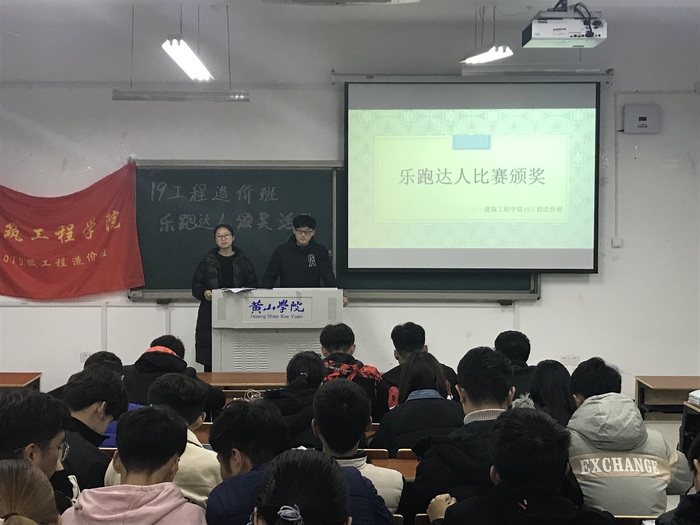 1月2日晚,19工程造价班乐跑达人评选活动颁奖仪式在文渊楼1304教室举行。本次颁奖仪式由体育委员包家庆主持,19工程造价班全体同学参加了本次颁奖仪式。