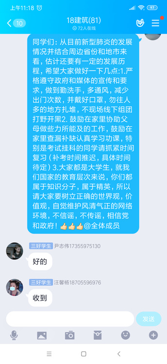 为进一步做好疫情防控期间学生教育管理工作,主动适应学生工作的新情况和新要求。积极召开线上主题班会排解学生在疫情防控期间不良情绪,克服恐慌忧虑心理。