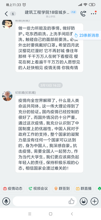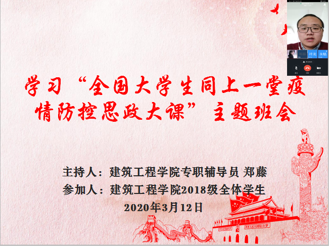 社会即课堂,生活即教育。和郑藤一样,我院全体专兼职辅导员在抗击疫情的战役中,严格按照新时代高校思想政治工作的标准要求、积极创新管理方式方法,开创学院网络思政育人新模式,努力推动思政工作步上新台阶。