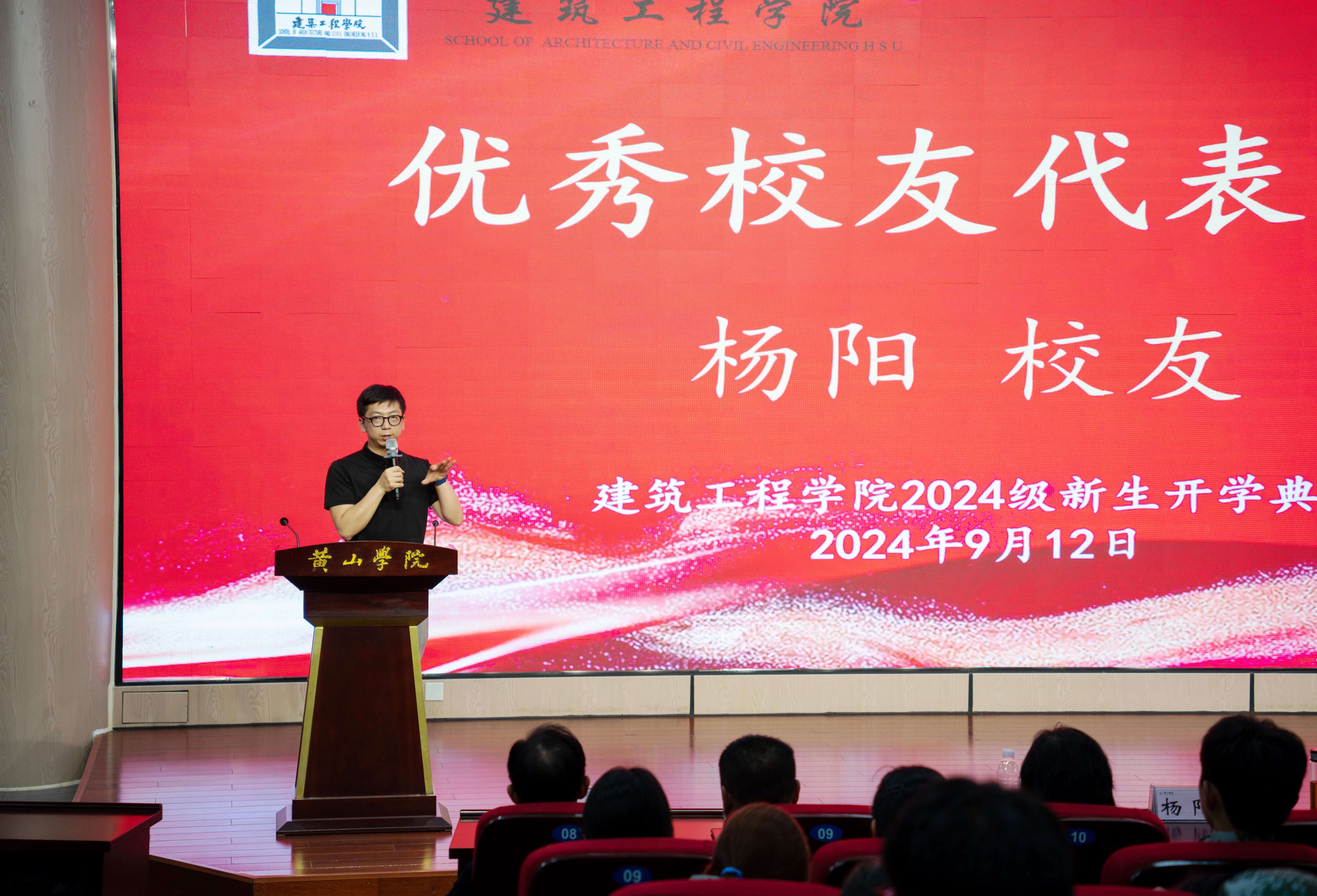 优秀校友代表杨阳,分享了自己的成长经历和宝贵经验。杨阳是安徽大学艺术学院设计系环境设计专业讲师,拥有丰富的学术和实践经历,他通过自身学习成长的故事激励着每一位同学努力追求卓越。