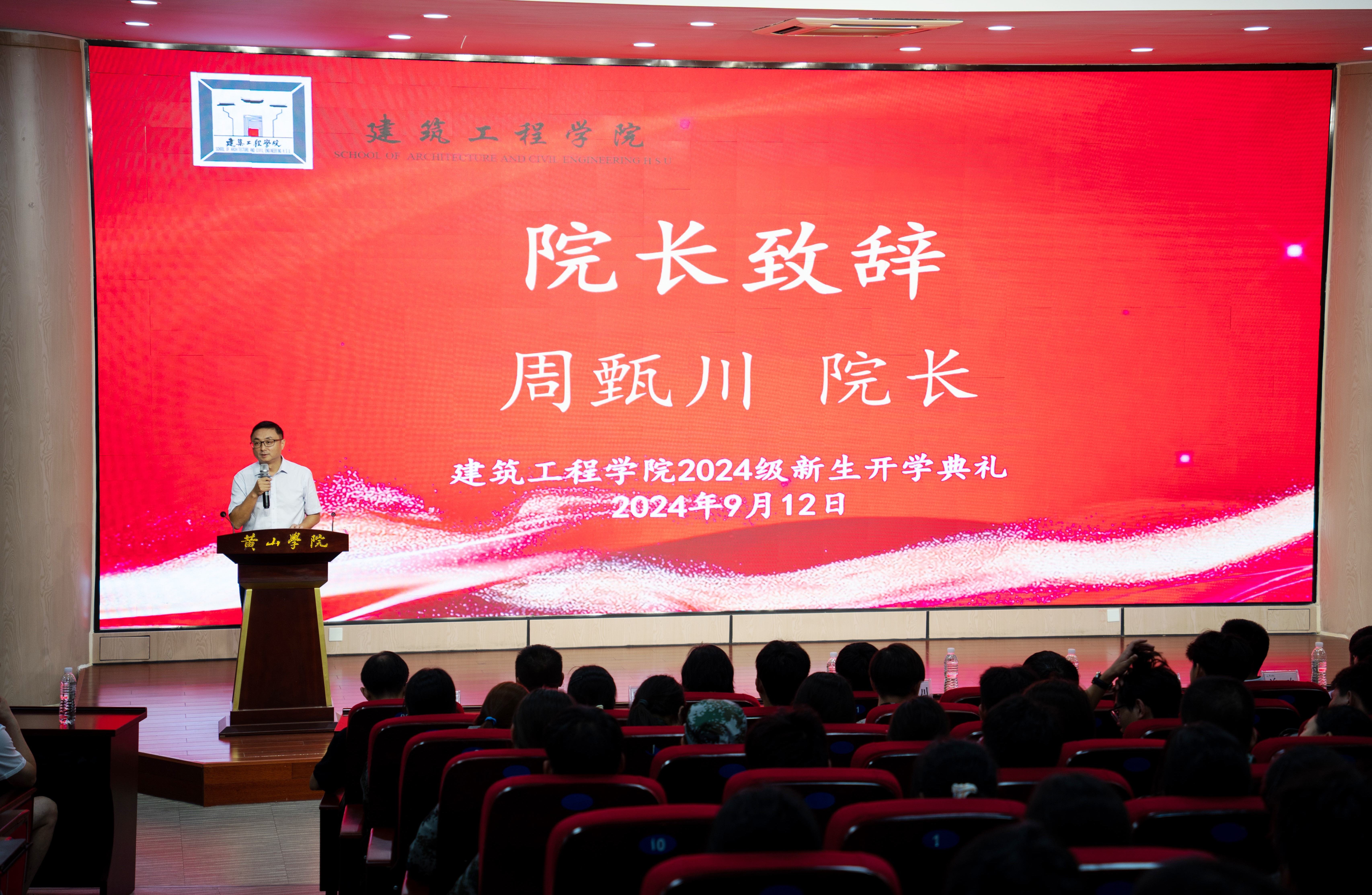 首先,院长周甄川发表致辞,他代表学院全体师生欢迎新同学的到来,并介绍了学院的总体情况。此外,还结合个人经历对全体新同学们提出了三点希望:一要胸怀大志,怀揣梦想启新程;二要好学深思,心无旁骛炼本领;三要返本开新,知行合一见实效。