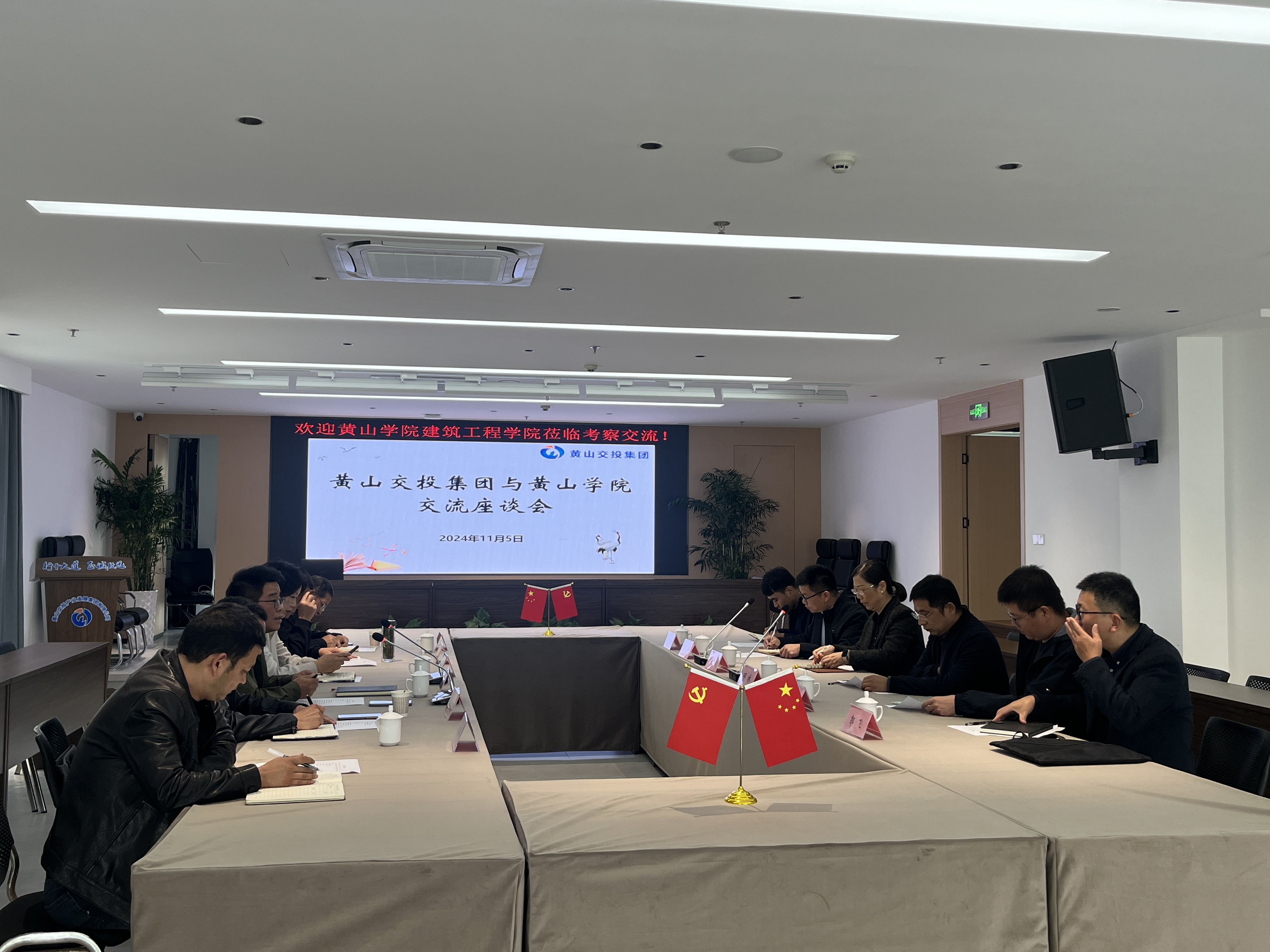 邱慧书记对黄山交投产业发展集团有限公司近些年在建设领域所取得的成绩表示祝贺,她重点介绍了学院发展历程、专业特色,并就大学生实习实践基地建设、就业基地建设等提出合作期望。邓林副院长对我院在学科专业建设、办学特色、人才培养、社会服务等方面所做的工作进行阐述,并就如何推进合作交流等方面的具体举措做了深入阐释。他希望,双方不断深化产学研合作,深度探索校企合作新模式、新路径,实现优势互补、合作共赢,并表达了对企业专家赴学校任课、教师赴企业挂职锻炼的期望。