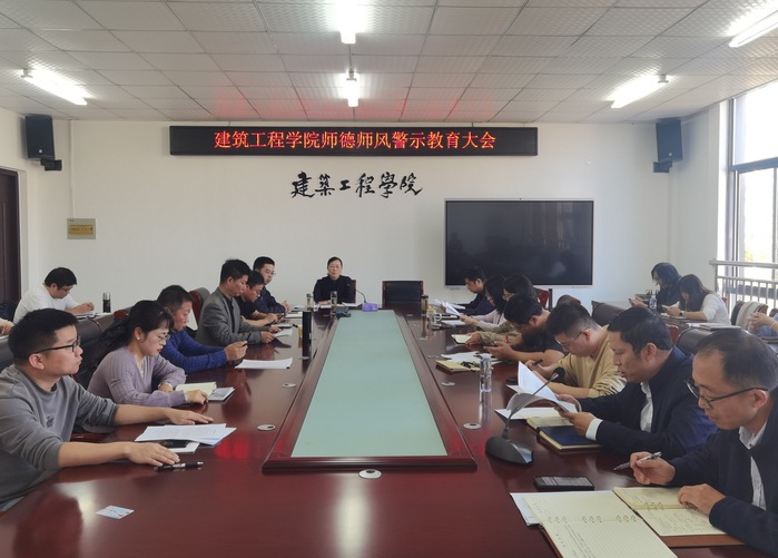 会上首先由党委委员分别领学了《新时代高校教师职业行为十项准则》《教师资格条例》《中华人民共和国教师法》等相关文件。王泽梁书记组织全院教师学习了教育部公开曝光师德师风违规典型案例、科研诚信案件、学术不端行为等典型案例。深刻剖析了教师队伍中存在的重点问题,引导大家以案为鉴,以案明纪,以案促改,时刻保持清醒与警惕,守住底线,不越红线。并强调全体教师要以案例为鉴,落实责任,树立底线意识,希望每一位教师都能在今后的工作中努力践行师德职责。
