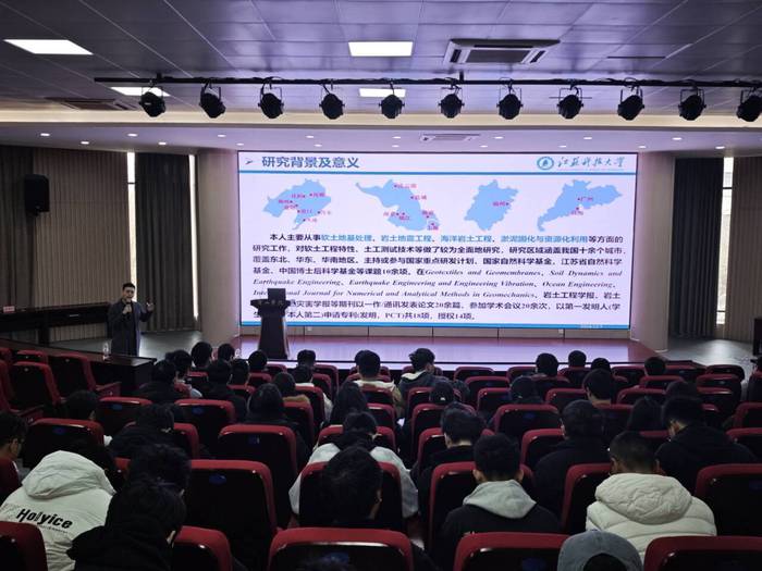 129日上午,建工讲坛第10讲在率水校区文端楼二楼报告厅举行,yl23411永利集团2007级土木工程专业优秀校友,江苏科技大学副教授张雷作了题为“富水低渗性软土的低碳固化方法研究进展”的学术报告。yl23411永利集团副院长邓林,土木工程专业师生共200余人参加报告会,报告会由邓林主持。