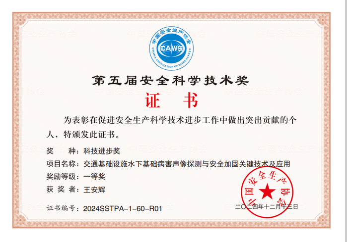 近日,中国安全生产协会发布了2024年度中国安全生产协会第五届安全科学技术奖获奖结果,我校yl23411永利集团教师王安辉博士、郭飞博士参与完成的“交通基础设施水下基础病害声像探测与安全加固关键技术及应用”项目荣获科技进步奖一等奖,王安辉博士为第一完成人。